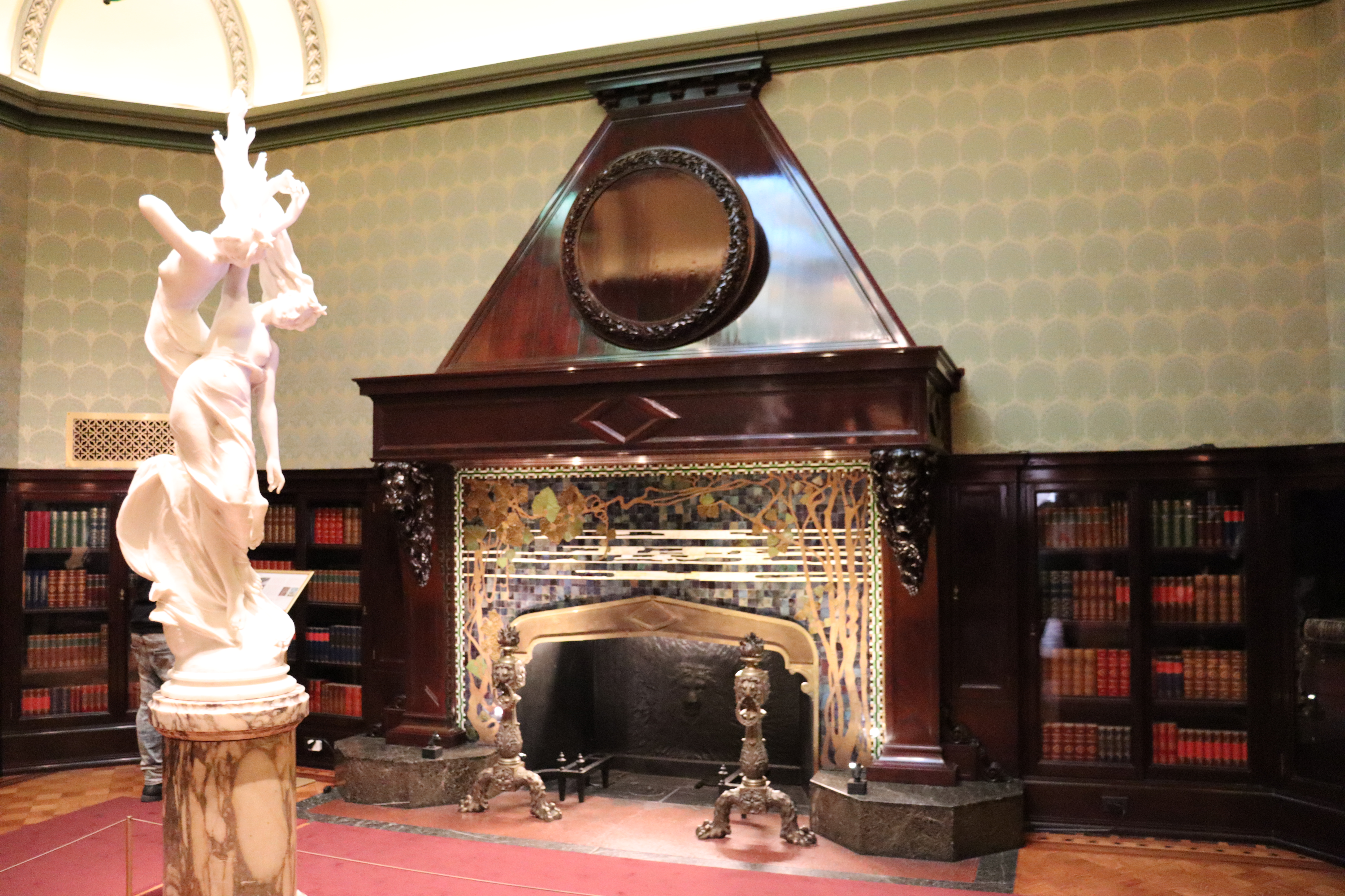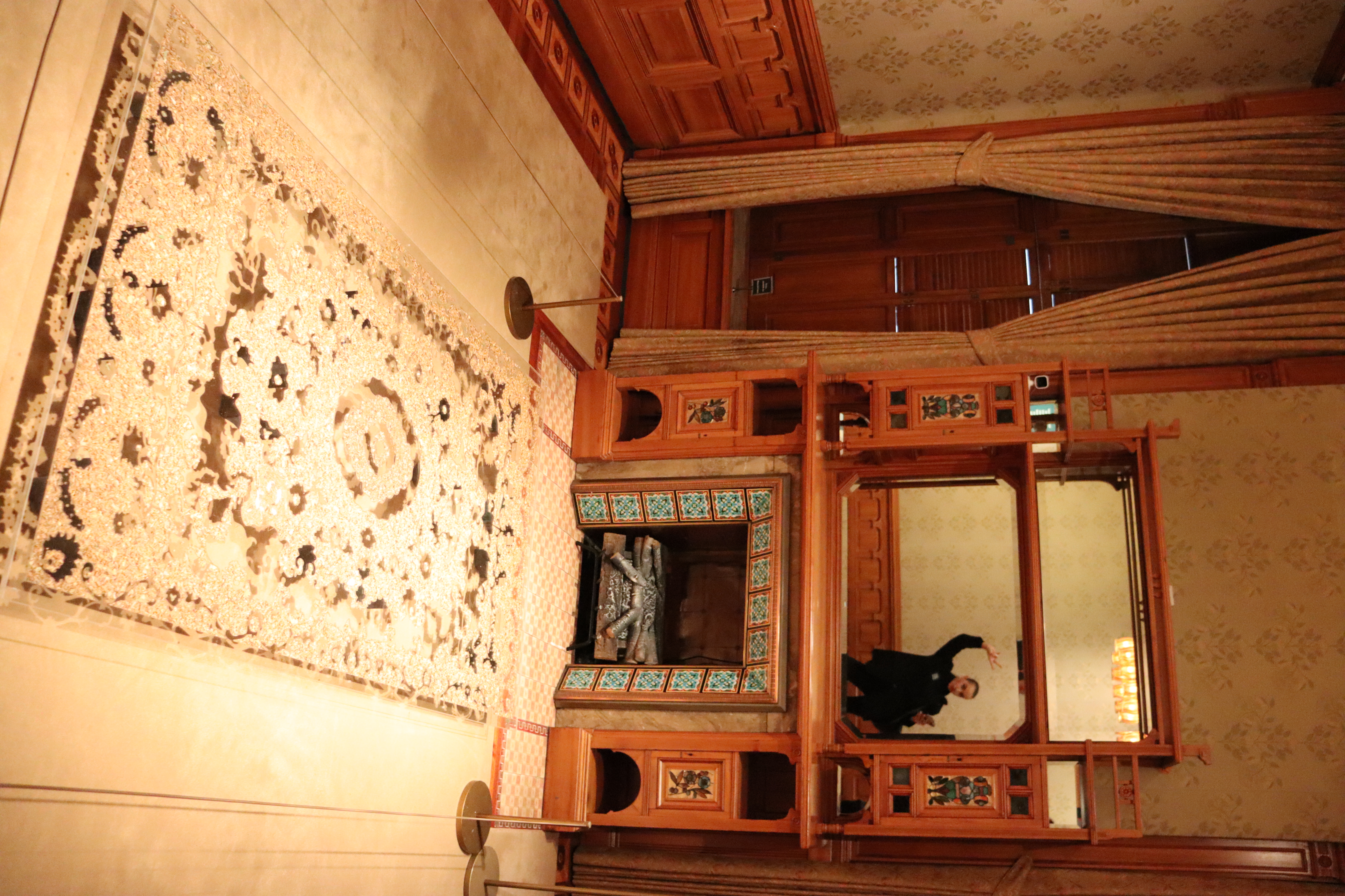 Edra Soto's Entrelazadas triptych inserts Puerto Rican rejas—decorative security grilles—into sculptural pillars that mimic and disrupt the mansion’s grand columns. These rejas, traditionally associated with working-class and Afro-Caribbean architecture, recontextualize the luxury surroundings, raising questions about whose cultural aesthetics are legitimized in American art and architecture.