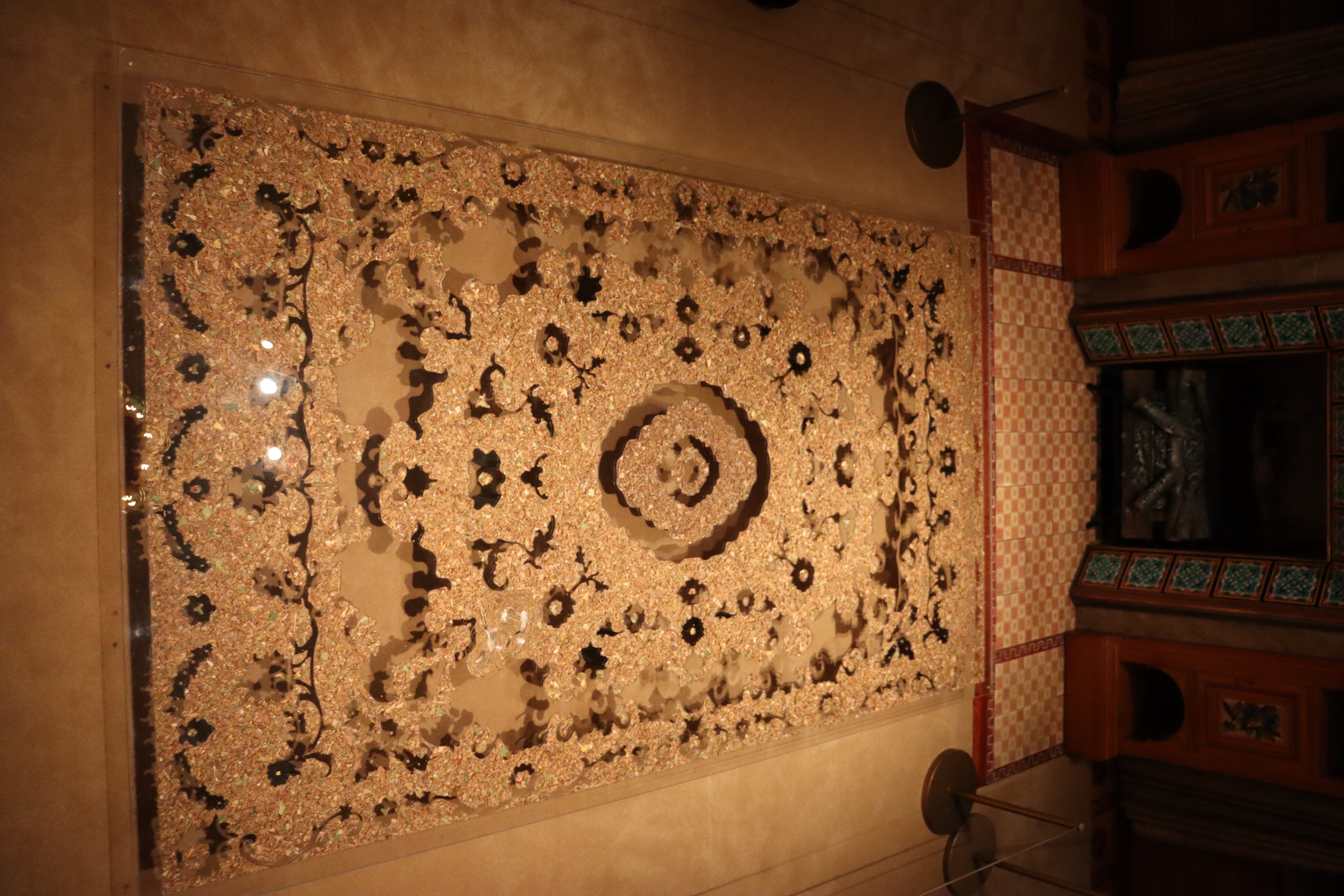 Laleh Motlagh's Threaded Memories replicates the pattern of a Persian rug using dried leaves from her family’s garden in Iran and from the grounds of the Nickerson Mansion. This fusion of diasporic and local materials forms a visual map of cultural memory, connecting the global migrations that often go unacknowledged in elite spaces like the Nickerson Mansion.